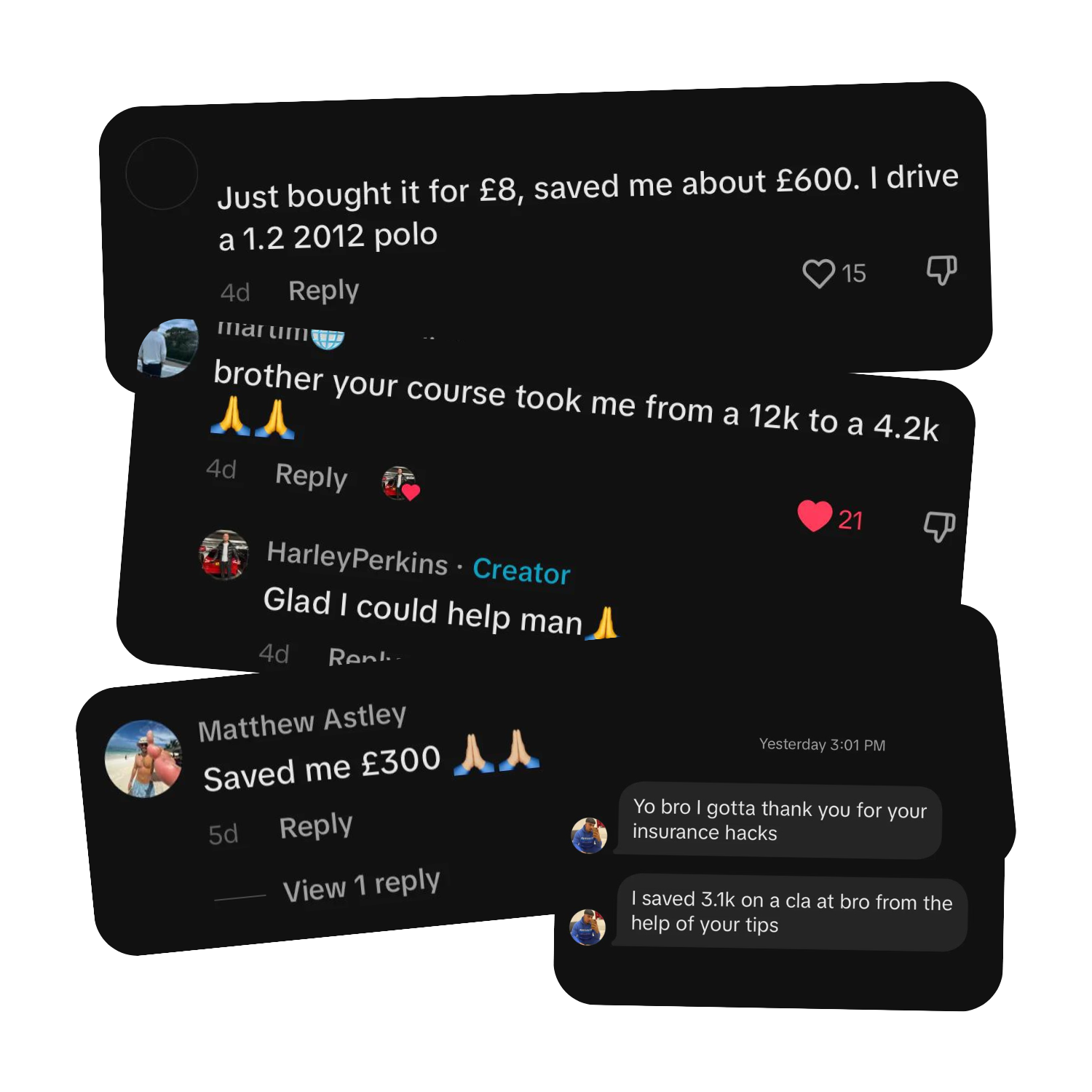 11. Refund policy on 1-1 - A refund is due only if BOTH companies fail to lower a quote you have found provided on the form and you can prove it to the specialist, you are eligible for a refund. Only as long as you have followed the correct process of getting a quote from both specialists. This being it... Once purchased you have to fill out the form on option 1, any problems you have to contact their whatsapp number or office number on their website provided. You have to also of contacted option 2 via whatsapp. If they have both failed to lower your quote, you have to contact me to allow me to resolve it, by resolving it i will ask if they can lower the admin, run more quotes to see if they can do anything else to lower it etc. After this if they still can't provide a lower quote, you are due a refund! Contact me via instagram (Theinsurancehack) We will be available on any business day Mon-Fri up until 6pm. Also when it asks you what the cheapest quote you have found is, if its none or left blank on the form, the quote the specialists find is classed as cheaper!